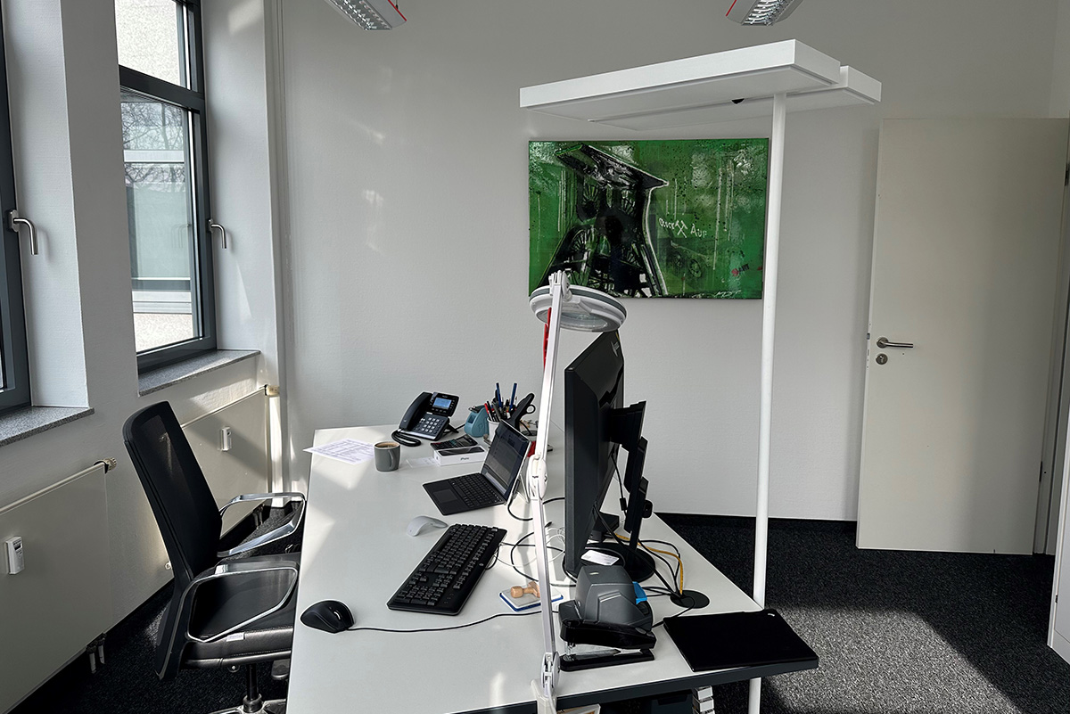 - Helle, lichtdurchflutete Arbeitsplätze mit höhenverstellbaren Tischen
